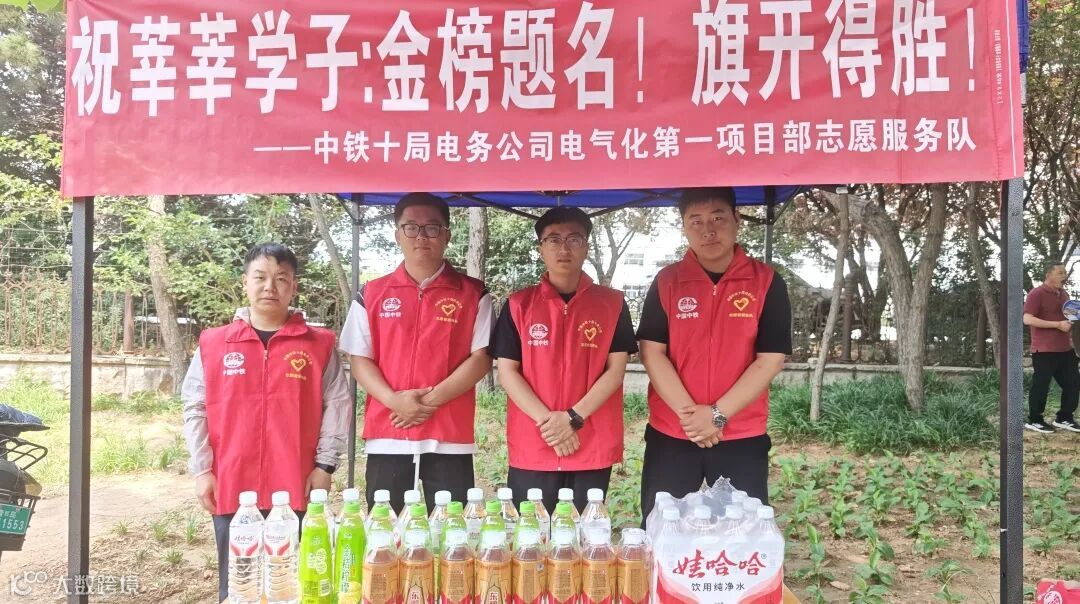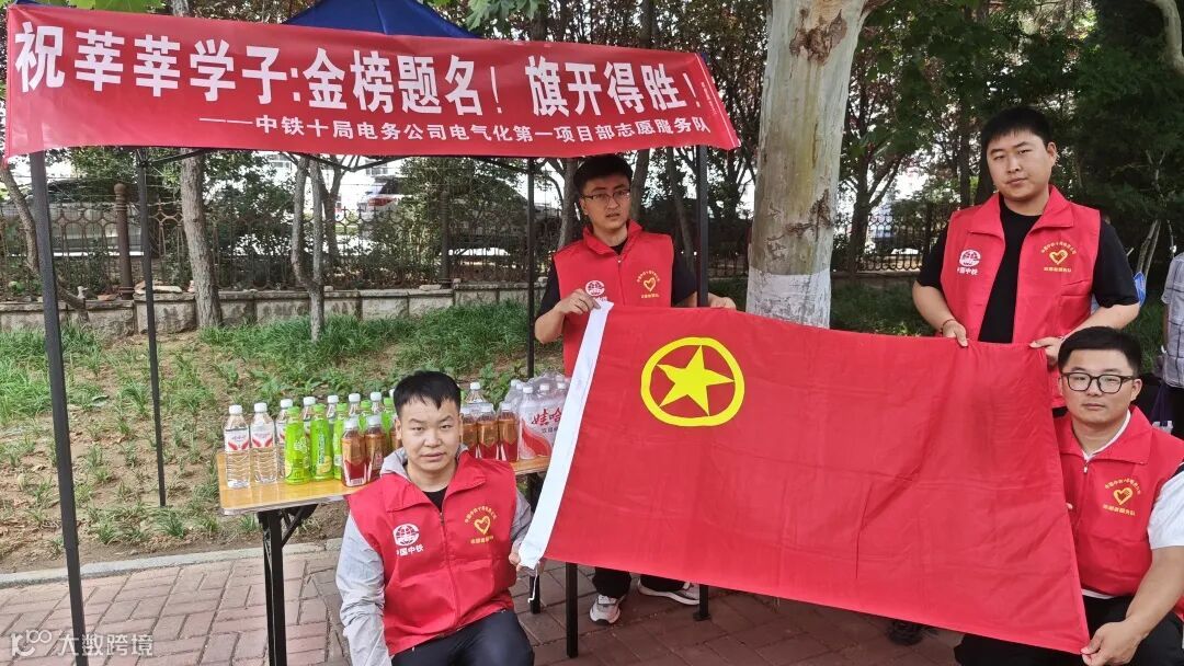 高考期间,中铁十局电务公司团委积极联动,携手共青团济南市历下区委、中铁十局投资公司团委,在山东师范大学附属中学开展“青心呵护 筑梦远航”爱心助考活动。同时,组织基层各单位依托项目属地,在济南西城实验中学、青岛西海岸新区实验高级中学、南京市秦淮科技中学等多个考点开展“助力高考 为梦护航”志愿活动。