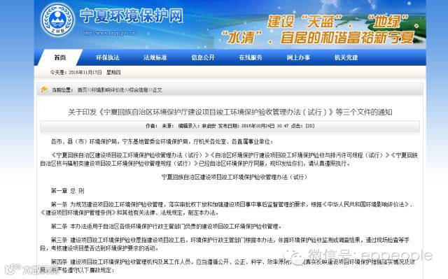 10月24日,宁夏环保厅印发《宁夏回族自治区环境保护厅建设项目竣工环境保护验收管理办法(试行)》等三个文件的通知。