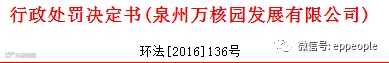 泉州万核园发展有限公司辐射安全违法一案,经我部调查,现已审查终结。
