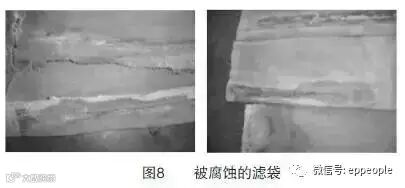 腐蚀是滤袋损坏的最常见的原因之一,由于烟气中含有多种腐蚀性物质,且在高温环境下腐蚀作用更大,从而会造成滤袋损坏。产生腐蚀的主要原因有水解、氧化、酸、碱腐蚀。其中主要以水解、氧化原因造成损坏较多,而酸腐蚀较少,碱腐蚀则更少。