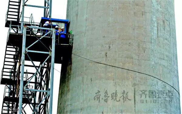 爬上高空采样有一定危险,为了安全,有的企业在外置的铁梯上再加一圈钢绳加固。