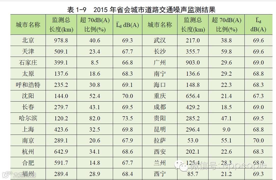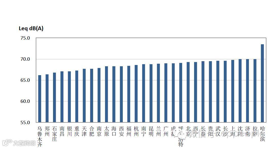 2015年,31个省会城市道路交通噪声昼间平均等效声级为68.7dB(A)。