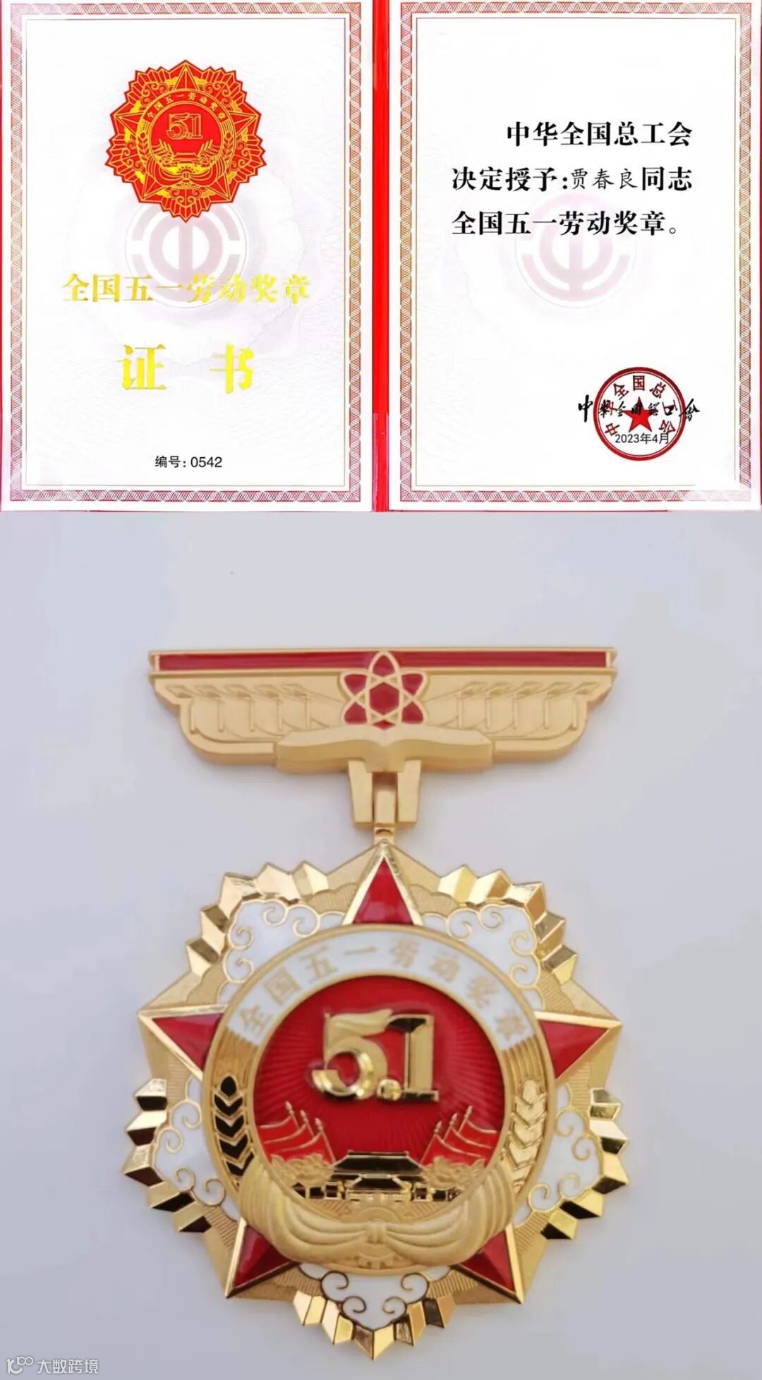 4月27日,2023年庆祝“五一”国际劳动节暨全国五一劳动奖和全国工人先锋号表彰大会在北京人民大会堂隆重举行。中铁十局电务公司电气化第二项目部作业队长贾春良荣获“全国五一劳动奖章”,参加了山东省庆祝“五一”国际劳动节暨省劳动模范和先进工作者表彰大会并上台领奖。这是贾春良同志继荣获山东省“五四青年奖章”、 山东省“最美青工”、中华全国铁路总工会“火车头”奖章、山东省五一劳动奖章、山东省第五届“齐鲁工匠”后获得的又一殊荣。