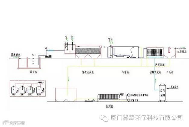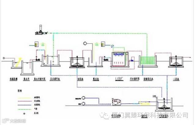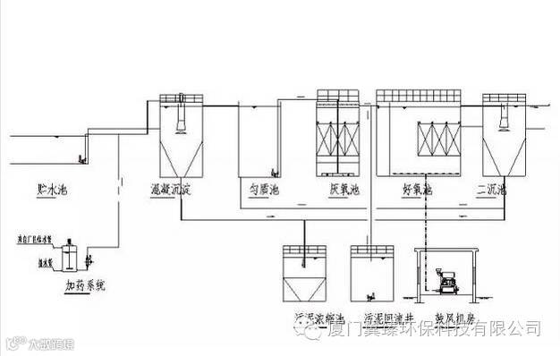 1.污水综合。首先将从各车间出来的生产废水及生活污水统一进入调节池,(调节池的作用:调节池的主要作用是均衡废水的水质和水量,保证后续生化处理设施运行的稳定性。)