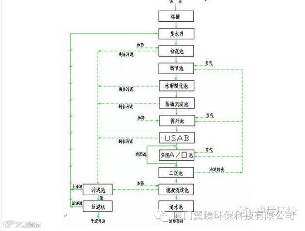 55、合成革废水处理工艺流程图