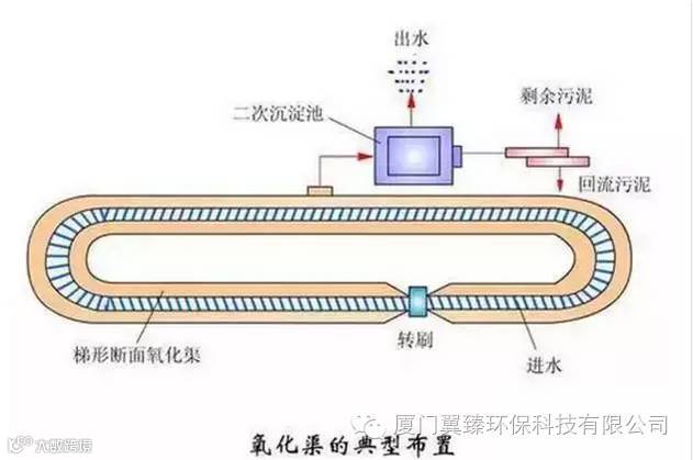 氧化沟利用连续环式反应池作生物反应池,混合液在该反应池中一条闭合曝气渠道进行连续循环,氧化沟通常在延时曝气条件下使用。氧化沟使用一种带方向控制的曝气和搅动装置,向反应池中的物质传递水平速度,从而使被搅动的液体在闭合式渠道中循环。