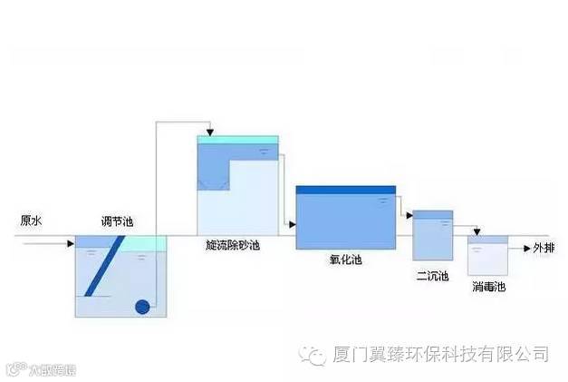 最常用的工艺有3种,即自然氧化塘工艺、厌氧塘+兼性塘+一体化氧化沟工艺、厌氧+好氧生物接触氧化工艺。