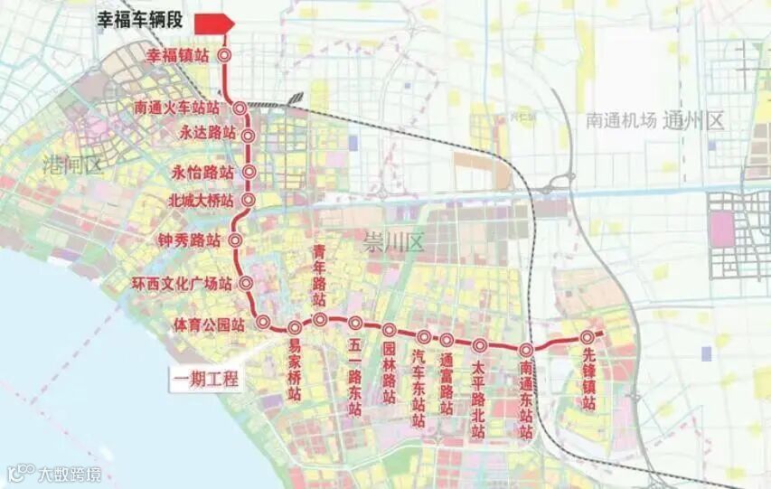 南通轨道交通2号线呈“L”型走向,线路北起自崇川区幸福站,途经崇川区、通州区,东止于通州区先锋站。一期工程全长20.4公里,共有17座车站,均为地下车站,设幸福车辆段1座。列车采用6节编组B型列车,设计时速达80公里。