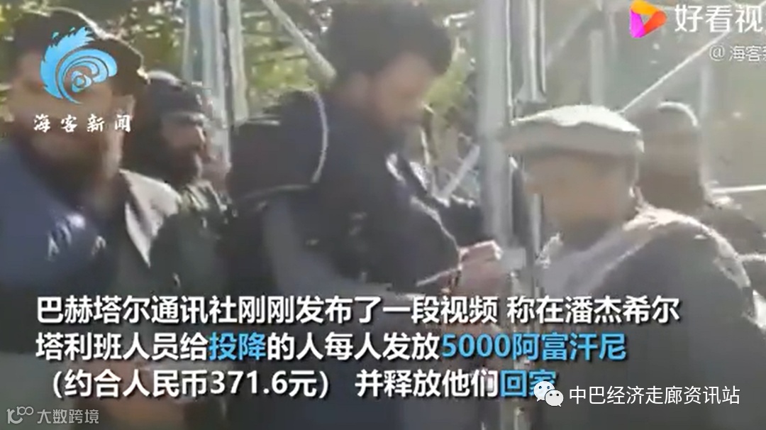 △据外媒报道,塔利班在潘杰希尔向当地投降的士兵每人发放5000阿富汗尼(约371元人民币),并释放他们回家。