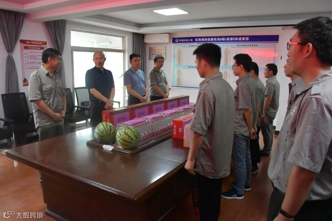 公司总经理、党委副书记张敬武,公司副总经理张俊涛冒着酷暑到宁波轨道交通项目部杭海城际工地进行检查,并开展了“夏日送凉爽”现场慰问活动,把组织的关怀亲手送到施工一线、送到员工身边,让参建员工时刻感受项目部这个“家”的亲和力,增强了归属感。