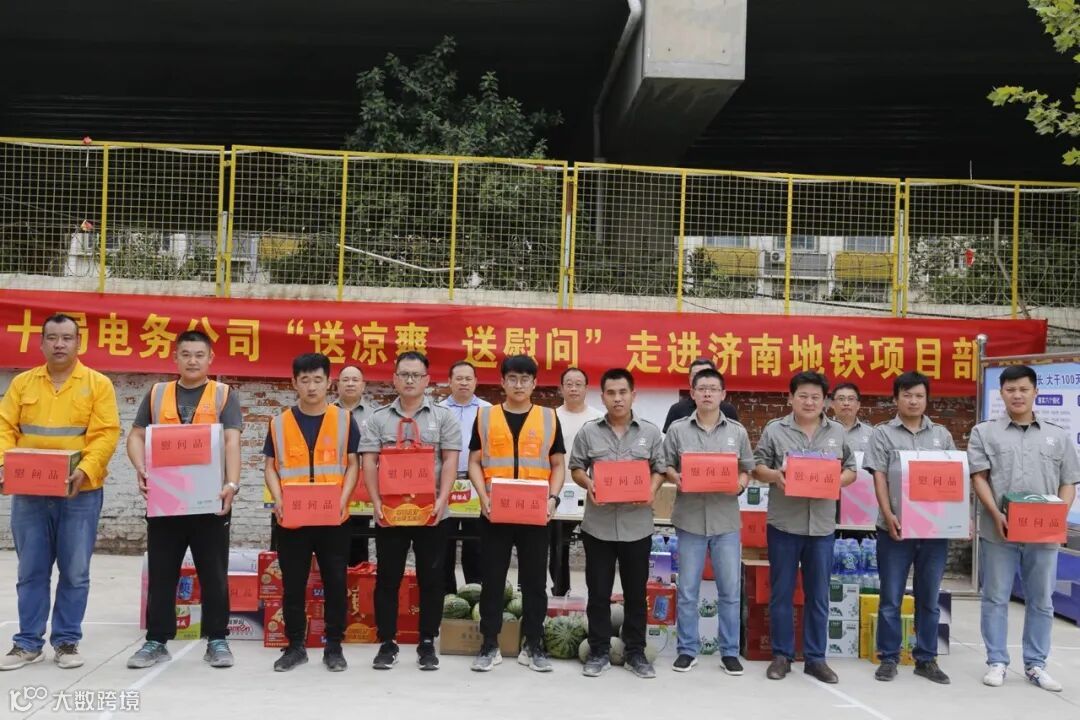 公司党委书记、执行董事张庆法,副总经理周珩、工会副主席姜吉春到济南地铁项目部,慰问坚守奋战在一线的全体职工。期间,张书记与大家进行了亲切交流,详细了解了职工的生产生活、防暑降温和劳动保护等情况,对不畏高温酷暑、坚守岗位的广大一线职工给予高度评价,对他们服务大局、攻坚克难、吃苦耐劳的劳动精神表示赞扬。随后,为项目部广大职工送上了夏凉被、绿豆、西瓜、饮料等慰问品,并叮嘱职工们在夏季高温时段一定要注意防暑降温,提高安全意识,拿出战高温、斗酷暑、敢打敢拼的精神,确保安全优质高效地完成施工生产任务。
