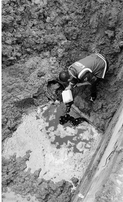 环境执法人员经过4个小时的勘察发现,在垃圾场地下埋藏了一根长约10米、直径20厘米左右的白色PPC排水管。执法人员立即对排水管内污水进行了采样,并将管道堵塞。