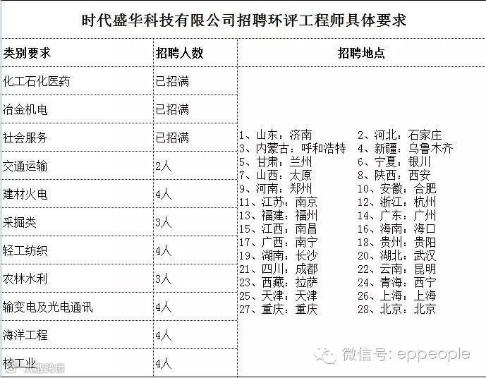 | 本帖最后由 木板 于 2016-7-14 15:10 编辑 时代盛华科技有限公司(乙级资质,公司官网file:///C:\Users\ADMINI~1\AppData\Local\Temp\%W@GJ$ACOF(TYDYECOKVDYB.pnghttp://www.cnshidai.cn/)成立于2015年10月,由国家工商总局注册,注册资本5000万元人民币,是专业从事检测技术和建设项目环境影响评价的服务机构。时代盛华科技有限公司有一支由教授级高级工程师、高级工程师、工程师等各层次专业技术人员组成的高素质专业技术队伍,其中博士1人、硕士6人,本科以上学历人员占公司总人员的80%以上,工程师以上人员占总人数的30%以上。公司技术人员获得省部级科技奖二等奖2项、三等奖3项、市级科技奖1等奖5项、二等奖3项。公司主要技术负责人参与“十二五”国家重大水专项研究,担任专题组组长。 吉林省文化产业投资控股(集团)有限公司(简称“吉林文投集团”file:///C:\Users\ADMINI~1\AppData\Local\Temp\%W@GJ$ACOF(TYDYECOKVDYB.pnghttp://www.jcicl.com/,英文简称“JCICL”)成立于2012年,注册资本5亿元人民币,时代盛华科技有限公司是吉林文投集团全资控股子公司,集团旗下拥有二十余家全资控股子公司,集团员工人数500余人。目前,吉林文投集团已经形成以文化产业为核心,集文化旅游产业综合体建设开发、数字应用技术、环保科技、艺术品交易、影视娱乐、文化金融等相关业务全面发展的综合性集团公司。 根据集团董事会及时代盛华科技有限公司总经办发展规划,现进行第三轮扩招,具体如下:一.全国范围招聘环评工程师: 1.每个省会城市2名环评工程师招满即止 时代盛华科技有限公司招聘环评工程师具体要求类别要求 招聘人数 招聘地点化工石化医药 已招满1、山东:济南 2、河北:石家庄 3、内蒙古:呼和浩特 4、新疆:乌鲁木齐 5、甘肃:兰州 6、宁夏:银川 7、山西:太原 8、陕西:西安 9、河南:郑州 10、安徽:合肥 11、江苏:南京 12、浙江:杭州 13、福建:福州 14、广东:广州 15、江西:南昌 16、海南:海口 17、广西:南宁 18、贵州:贵阳 19、湖南:长沙 20、湖北:武汉 21、四川:成都 22、云南:昆明 23、西藏:拉萨 24、青海:西宁 25、天津:天津 26、上海:上海 27、重庆:重庆 28、北京:北京冶金机电 已招满社会服务 已招满交通运输 2人建材火电 4人采掘类 3人轻工纺织 4人农林水利 3人输变电及光电通讯 4人海洋工程 4人核工业 4人 2、岗位要求: (1)有良好的语言表达能力、沟通能力和较强的写作能力; (2)退休者亦可返聘; (3)有市场开拓能力和相关部门人脉者优先。 3、薪资待遇: (1)工资待遇:基本工资+环评师补贴年薪二十万元以上, (2)福利待遇:五险一金、休国家法定节假日、享受带薪休假、出差补助、通讯补助、单位旅游、住房补贴、股权激励; (3)外地人员也可在当地分公司任职,能力强者可作为当地管理人员主管环评业务。 二.全国范围诚邀合作伙伴 (吉林省、云南省、辽宁省除外) 1. 有当地相关部门人脉资源; 2. 有较强的市场开发能力,有一定的市场份额; 3.人品端正,想长期合作; 4.有相应的办公职场及办公设备; 5.有环评编写技术人员; 6.企业或个人。 合作范围:全国 详情百度搜索 吉林文投集团 或拨打4000500606全国 96999全省 人力资源中心:010-86060000 个人电话:15948029001 包助理 欢迎诚意者垂询 人力资源邮箱:hr@jcicl.com(暂用) 个人邮箱:23877130@qq.com 集团网站:file:///C:\Users\ADMINI~1\AppData\Local\Temp\%W@GJ$ACOF(TYDYECOKVDYB.pnghttp://www.jcicl.com/ 时代盛华科技有限公司官网:file:///C:\Users\ADMINI~1\AppData\Local\Temp\%W@GJ$ACOF(TYDYECOKVDYB.pnghttp://www.cnshidai.cn/(完善中) 三.集团资质 [img]file:///C:\Users\Administrator\Documents\Tencent Files\464780631\Image\C2C\G])89}N2[5W3$`%O4L]WF_9.jpg[/img] file:///C:\Users\Administrator\Documents\Tencent Files\464780631\Image\C2C\LBKY4U1A%X}KG6V1SQO2YIS.jpg |