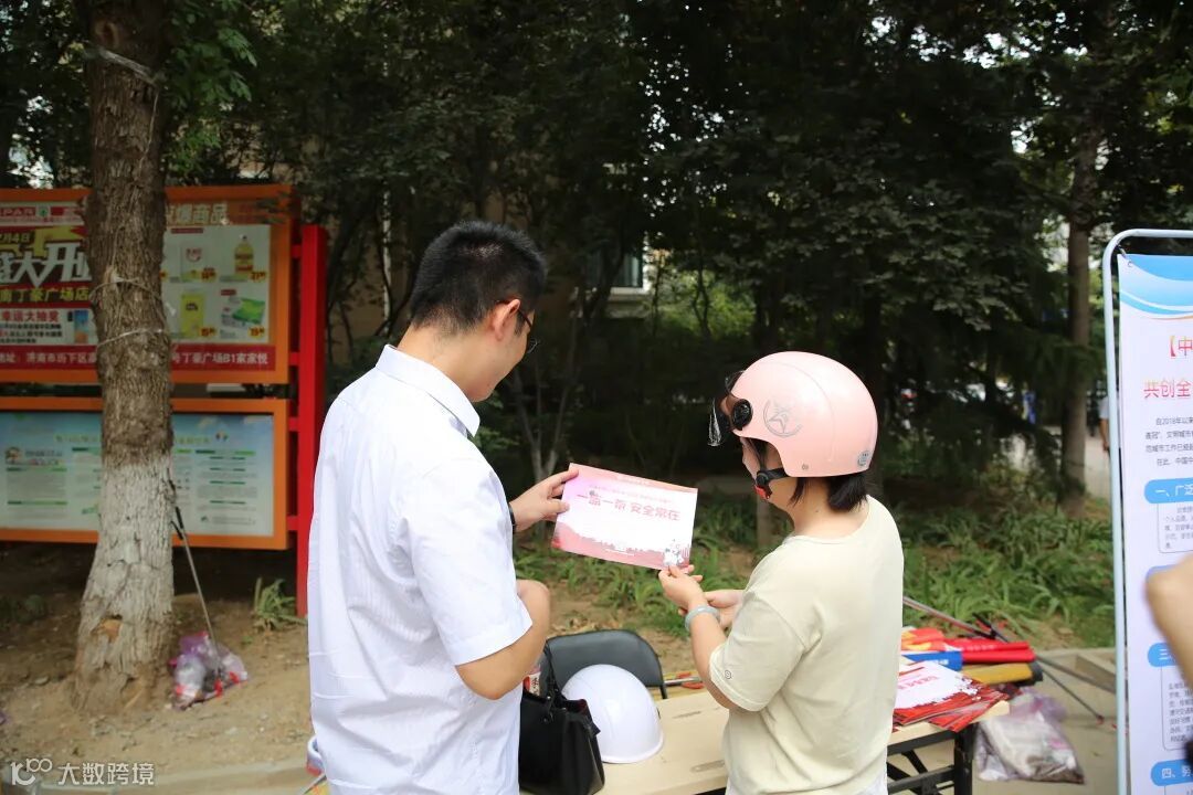 公司志愿服务队,在公司内部、社区道口、居民小区、城市路口等人口聚集地全面分发“一盔一带、安全常在”宣传手册并对手册内容进行宣传讲解。