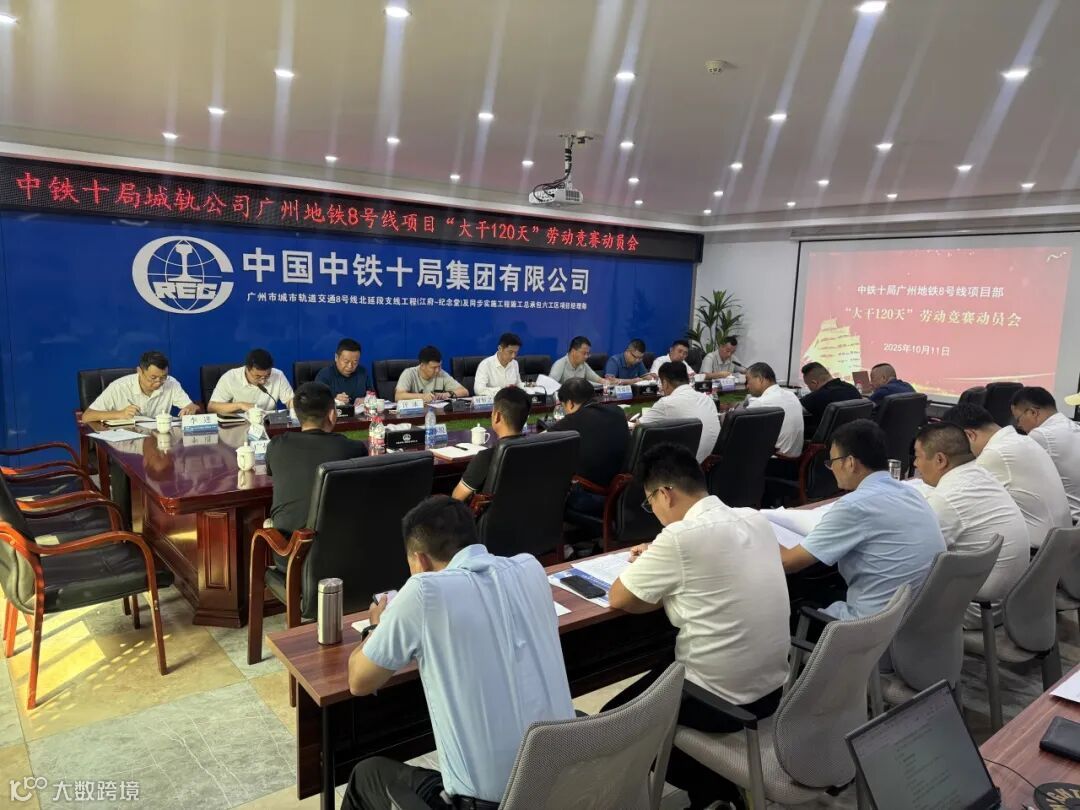 10月11日,为全面冲刺项目后续节点目标,凝聚各方力量,迅速掀起施工生产新高潮,广州地铁8号线项目在项目部会议室隆重举行“大干120天”劳动竞赛动员大会。(摄影/程挚)