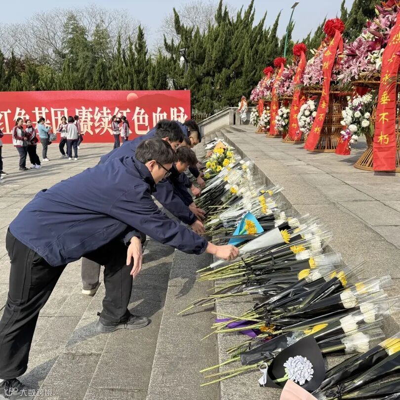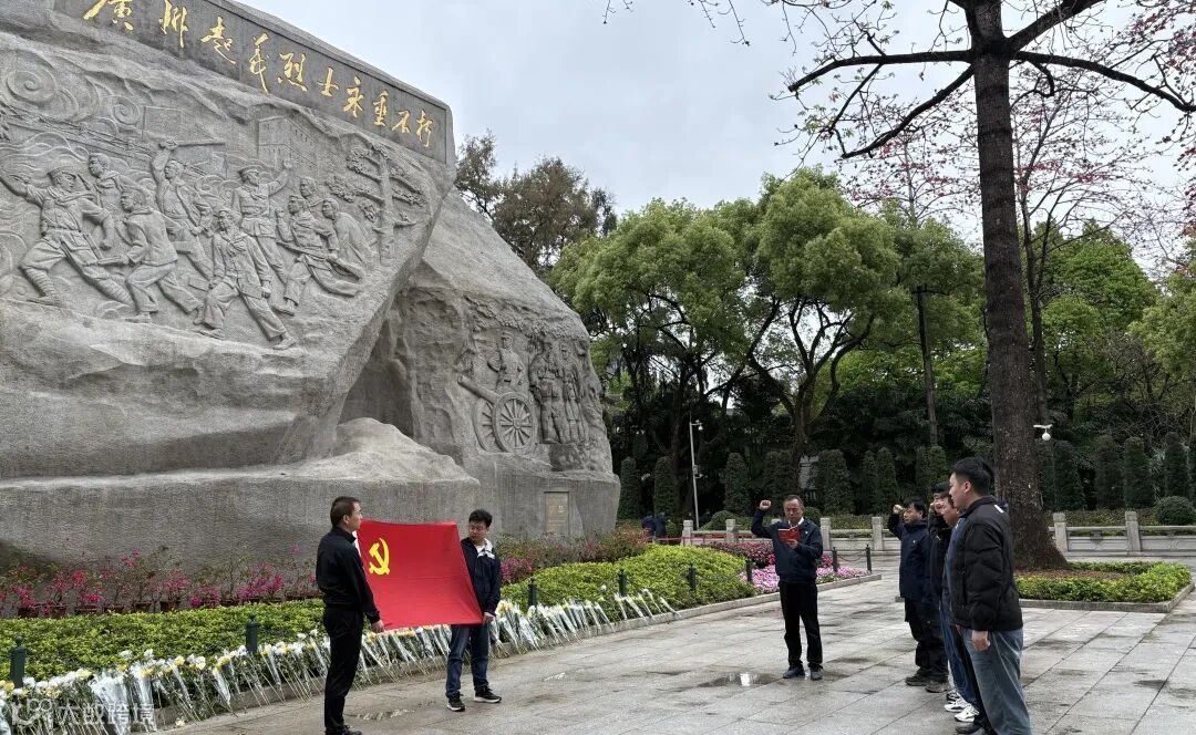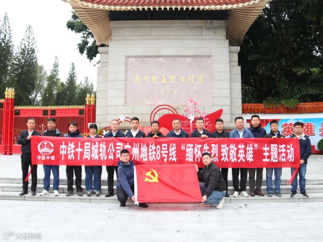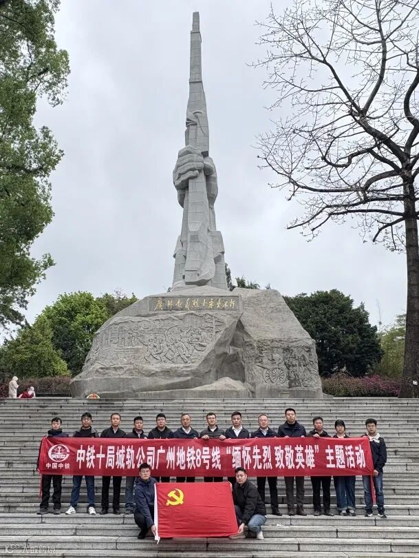 在清明节即将到来之际,广州地铁8号线项目部到广州起义烈士陵园开展“缅怀先烈 致敬英雄”主题活动,在巍峨的烈士纪念碑前,党员们重温入党誓词。全体党员面向党旗,举起右拳,庄严宣誓,用铿锵有力的誓言表达了继承先烈遗志、坚守初心使命、为共产主义事业奋斗终身的决心。将一朵朵盛开的菊花轻轻放置在碑前,每一朵菊花都寄托着对先烈的无限哀思,每一个鞠躬都表达着对英烈的崇高敬意。