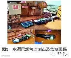 试验过程中水泥窑烟气SO2浓度监测使用英国KANEKM9106烟气分析仪。为保证试验结果的准确性,在试验前一天监测仪器已经通过华南某省环保厅监测中心校准,同时该仪器监测结果与该厂原有的烟囱处在线环保监测设备检测值基本一致。监测现场见图3。