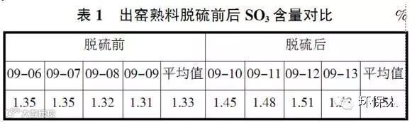 3.4 出窑熟料脱硫前后硫含量对比