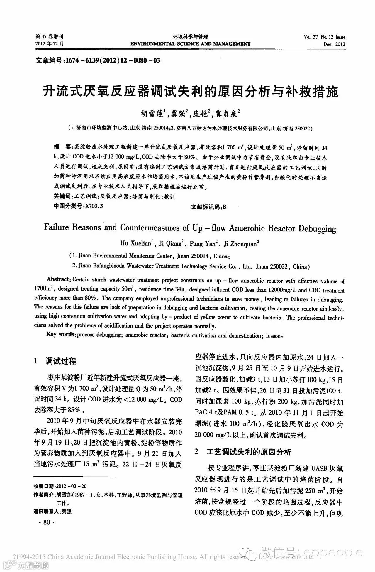 升流式厌氧反应器调试失利的原因分析与补救措施