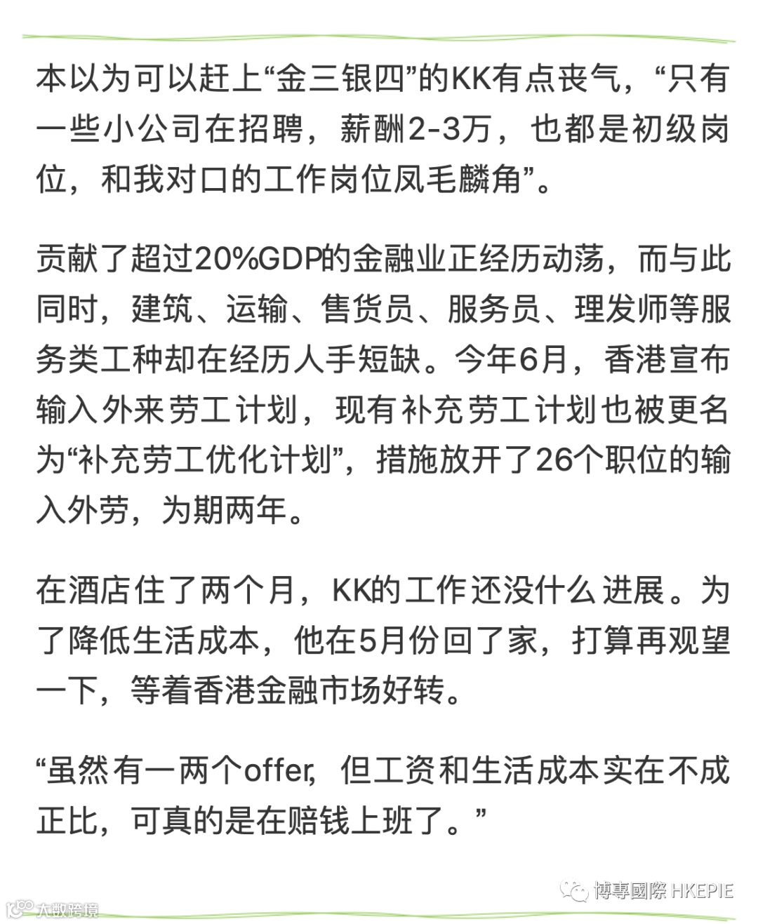 “中产的迁徙向来要付出比较高的代价。香港生活成本很高,有些地方的工资甚至比不上国内互联网大厂。如果仅仅是为了孩子的教育要孤注一掷举家搬迁,我觉得没什么必要。”
