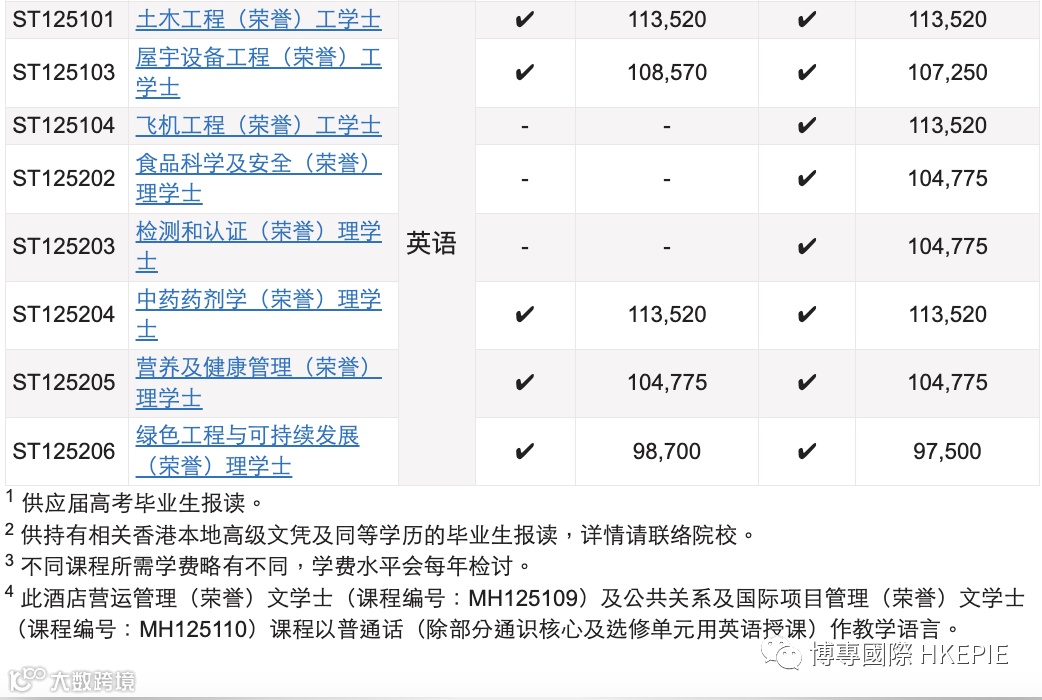 学费:104,775港币/年(如果需要额外修读学分,需额外付费)