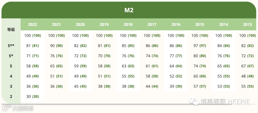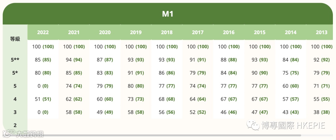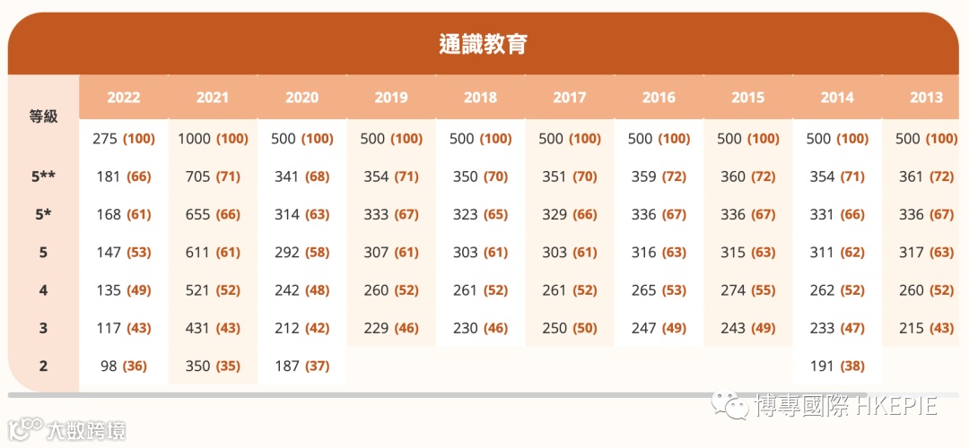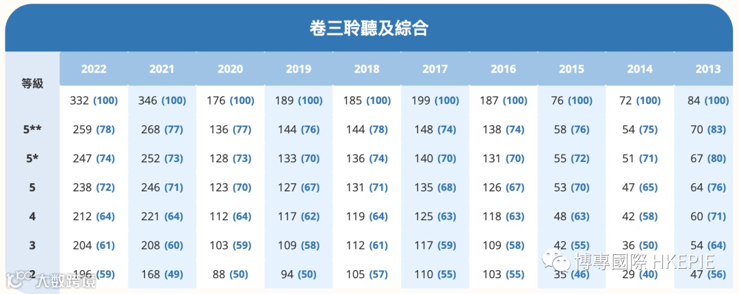 HKDSE四大主科Cut-Off 分数