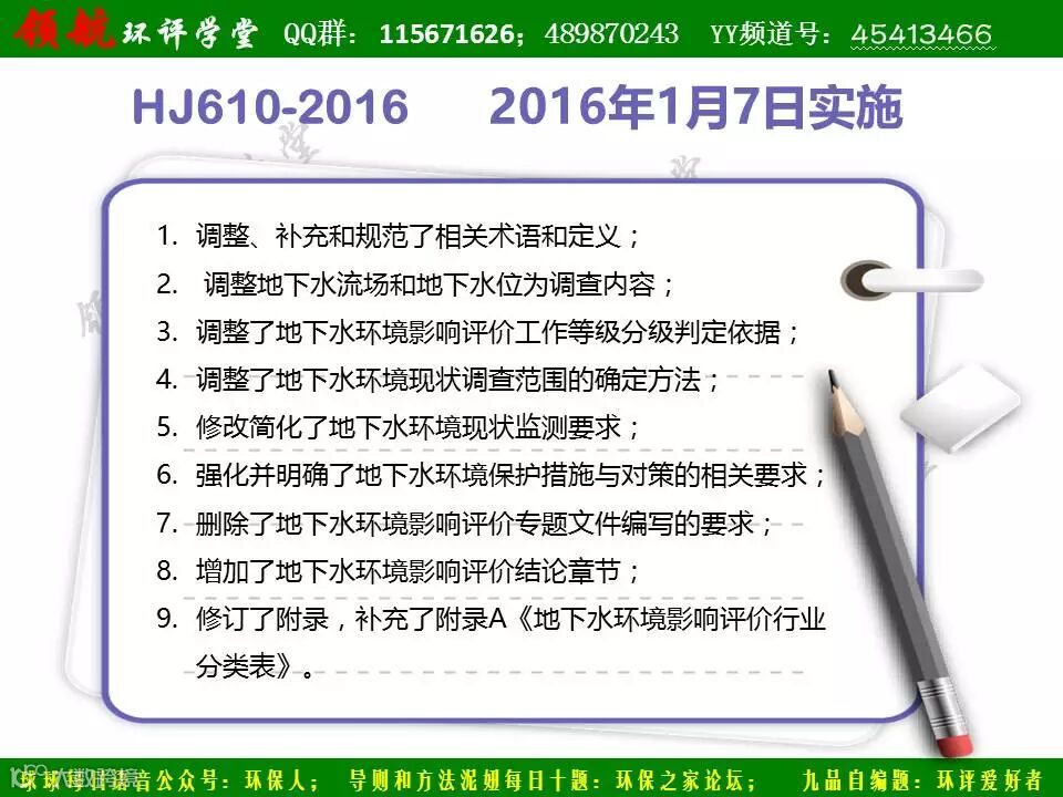 地下水导则HJ610-2016重新定义了“地下水”的环评术语;剥离了属水利部门管理的水资源、水位、地下水流场变化等内容,保留建设项目水质的直接影响部分;结合分类管理目录进行明确的评价工作分级,且工作分级方式彻底变化,更简化,更具操作性。