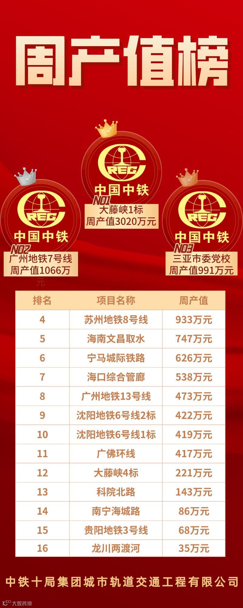 上一周时-右区间左线盾构机顺利接收,完成左线盾构机吊装节点验收,正在进行转场工作,转场后进行二次始发。实现周产值 933 万。
