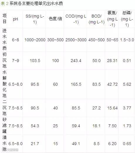 调试工作自2014年2月9日开始,至2014年4月25日结束,历时70余天,实现了皮革涂饰废水处理工程较低温度下的启动与调试运行,有效地保障了企业的正常生产。正常运行期间,系统各主要处理单元出水水质见表 2。