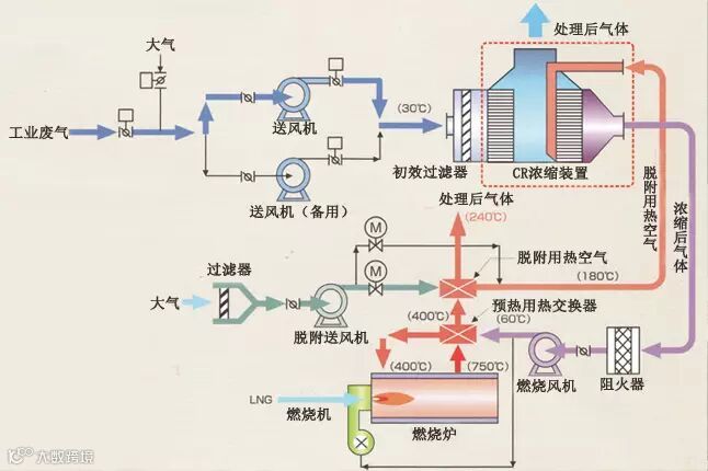 改善目标:该气体成分复杂,浓度较低,采用CR设备浓缩后再直接燃烧的方法进行处理。