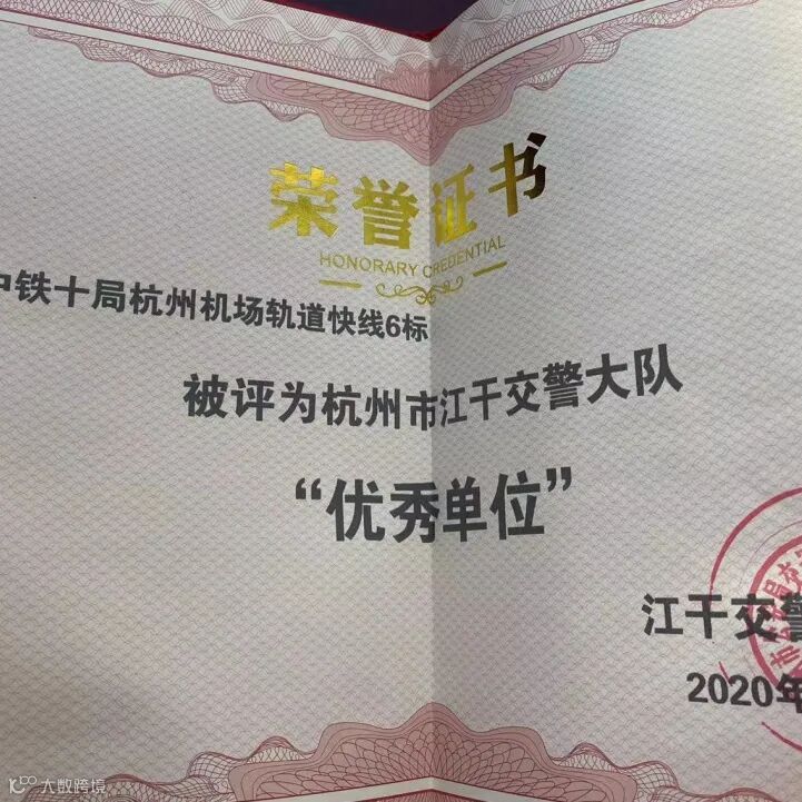 项目部多次获得杭州市江干区地铁建设施工区域专项管理考核月度评比第一名的好成绩;被评为杭州市江干区笕桥交警中队“优秀单位”荣誉称号;先后获得中铁十局城轨公司“先进基层党组织”、中铁十局城轨公司“先进集体”等荣誉称号。