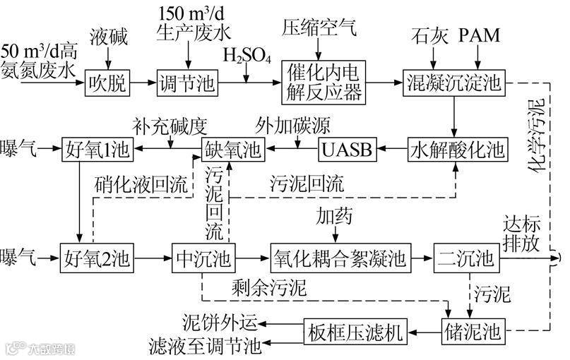 牛磺酸生产废水及污泥处理工艺流程如图1所示。