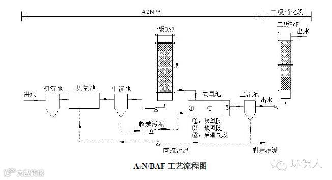 A2N/BAF组合工艺将反硝化化除磷菌与硝化菌分开培养,使各菌种在最适合的条件下生长,这就能充分发挥各菌种的优势,提高处理效率,成功解决了传统处理工艺所存在的上述两个难以解决的矛盾。