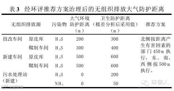 ④现有工程西侧为其他正常生产的某工业企业,向西侧扩建不具备建设条件,故为保障该皮革加工企业生产工艺、物流运输的连贯性和一体性,不建议对扩建工程进行重新选址。经环评推荐的治理措施后,本项目的无组织排放大气防护距离见表3。
