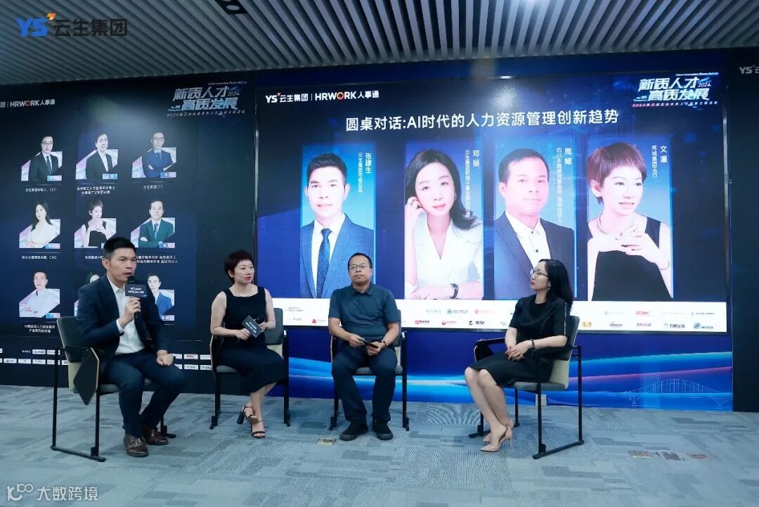 以《AI时代的人力资源管理创新趋势》为主题的圆桌对话环节最后进行,由云生集团市场总监张建生主持,四川永驰律师事务所、四川双华税务师事务所高级合伙人周鲲,云生集团职得干事业部总经理Linda,秀域集团HRD文瀑从法律法规、人才招聘、企业管理等不同角度探讨出AI技术进步如何塑造未来人力资源行业的生动图景,跨界对话,交叉碰撞,激发新思想,催生新理念。