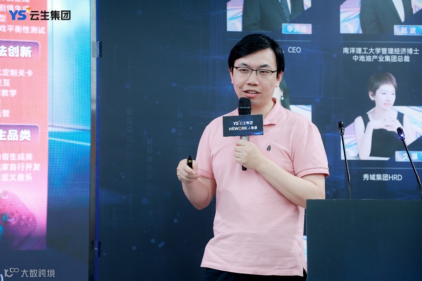 云生集团CTO吴斌的主题分享为《云生AI+人力资源让企业进入高质高效新时代》,他从独特的角度切入,提出“究竟怎样的岗位会被AI取代?” 在吴斌看来,缺乏创新能力的“键盘劳动密集型”岗位将会被取代,而基础的人力资源事务性工作恰好属于该范畴。他以招聘模块为例,指出了HR招聘工作中“招聘渠道多”、“人才匹配度不高”、“回复消息不及时”等痛点,介绍了云生集团“招聘云”平台如何通过AI自动寻访、AI自动邀约面试、AI自动构建企业人才库等功能解决这些痛点。同时还介绍了云生旗下人才云、就业通、职得干、劳法、HROWORK好喔云、出海易Chuhaiyi等AI赋能下的一站式人力资源管理平台。