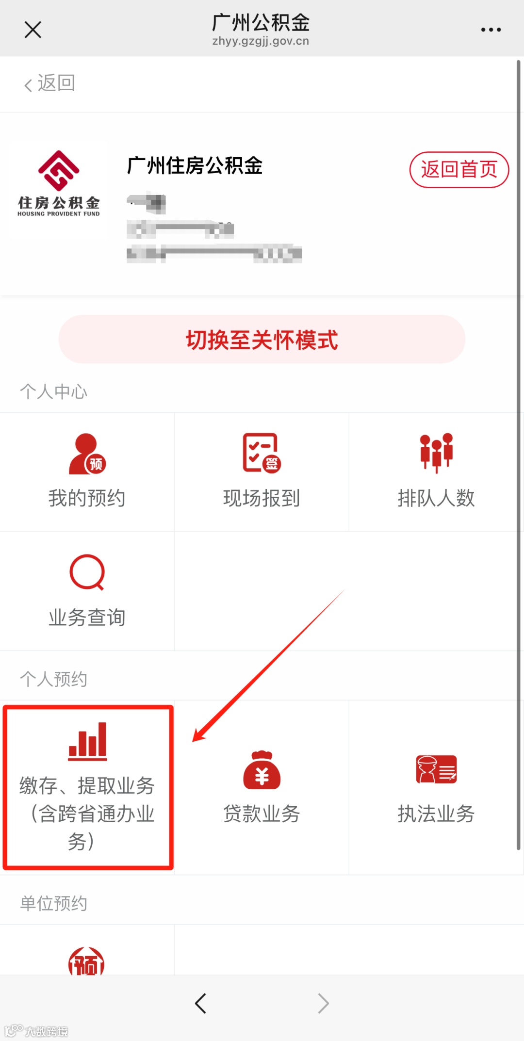 1、登录广州住房公积金管理中心,点击【预约业务】-选择【缴存、提取业务(含跨省通办业务)】