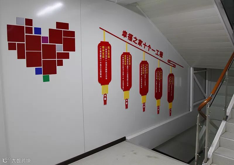 充分利用有限空间,在楼道墙壁布置了廉洁文化、安全质量标准、“幸福之家十个一”等浮雕墙,高标准的将文化建设有形化。