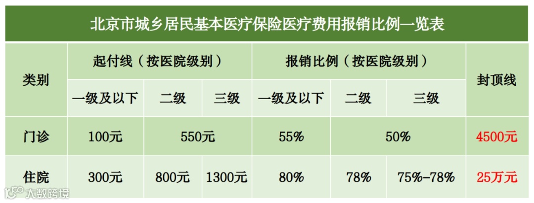 这里以北京市为例,给大家看看二者的报销比例的不同:
