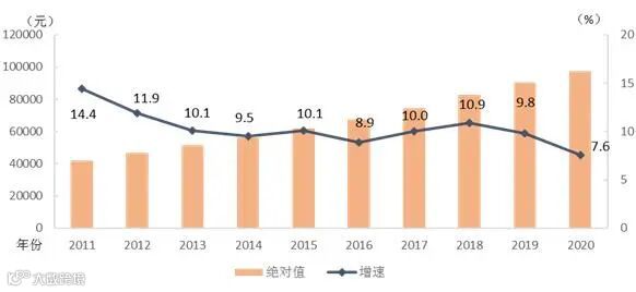 2020年全国城镇非私营单位就业人员年平均工资为97379元,比上年增加6878元,名义增长7.6%,增速比2019年回落2.2个百分点。扣除价格因素,2020年全国城镇非私营单位就业人员年平均工资实际增长5.2%。