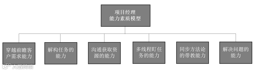 这里举一个某企业前台项目经理的例子(如下图)。在某个客户企业内,经过调研发现,这6项素质对于这个岗位族是最重要的,很大程度决定了绩效表现。而且,一个很巧合的事是,在若干岗位族的研究中,都发现最重要的前6项素质特别突出,与其他素质项之间拉开了明显差距。各位可以轻易地发现,这个新的素质模型不仅存在一些新的素质项,而且对于每项素质都有独特的定义。