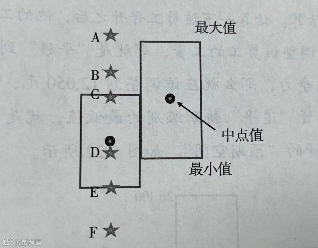 我们把员工从低级别向高级别晋升时可能产生的薪酬位置用 A—F罗列出来。大体上会有这六种可能: