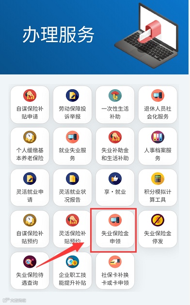 方法1:点击入口1,进入【北京人社】微信公众号申请,点击失业保险金申领。