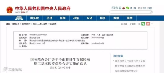 最新消息:3月25日,国务院办公厅印发《关于全面推进生育保险和职工基本医疗保险合并实施的意见》,明确生育保险基金并入职工基本医疗保险基金,统一征缴,统筹层次一致。