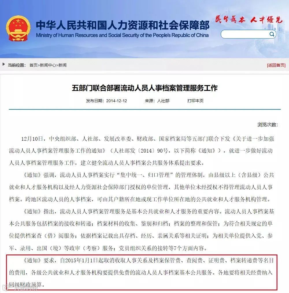毕业生档案存放收取费用吗?