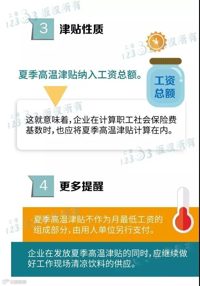 去年,本市将夏季高温津贴标准从200元/月调整为300元/月,执行时间为每年6月1日至9月30日,共4个月。今年这一标准将继续执行,不作调整。