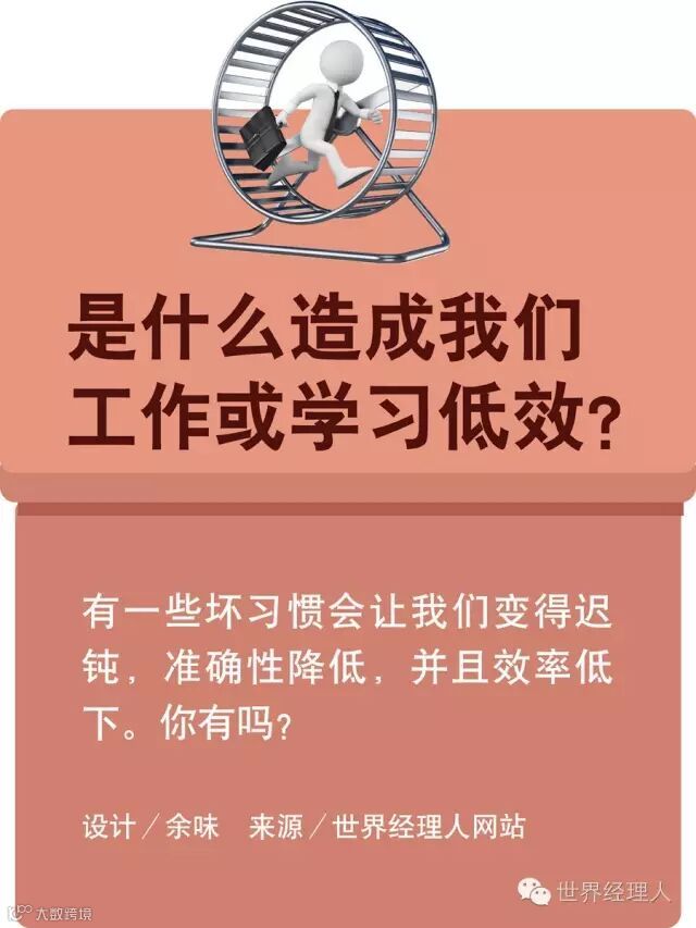 这些坏习惯让我们变得迟钝,让我们的准确性降低,并减少了我们原有的生产力。因此,及早发现它们并且控制这些坏习惯显得尤为重要。