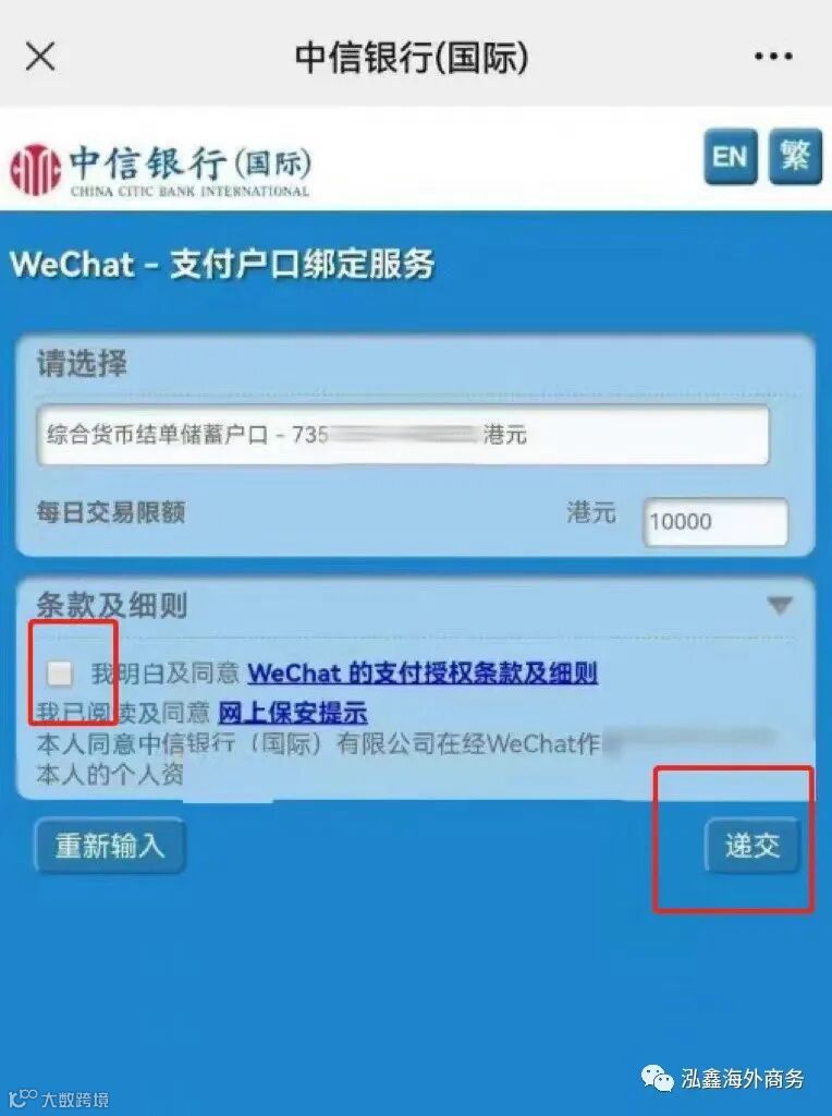 10.输入银行账号,点击【我明白及同意】按【递交】