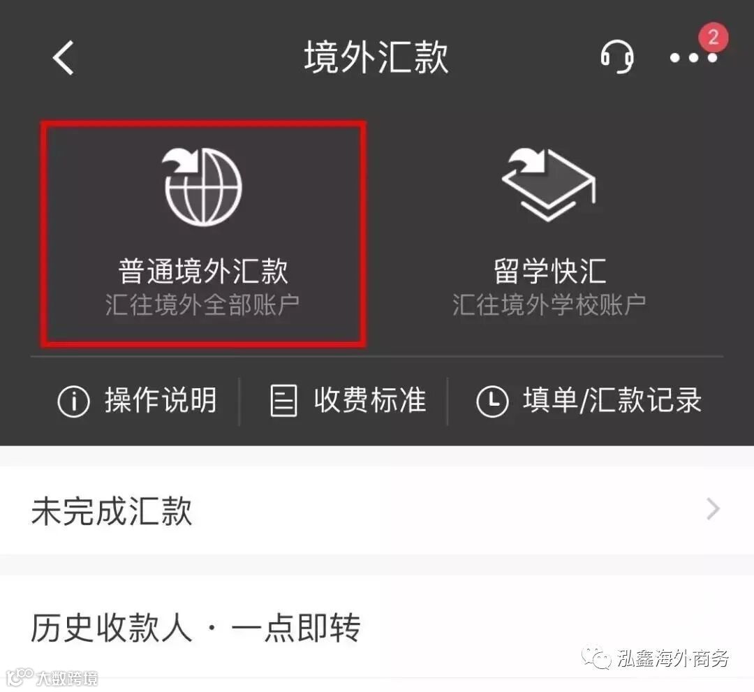1.找到“境外汇款”按钮,若主页不显示,可搜索“境外汇款”或者“跨境汇款”