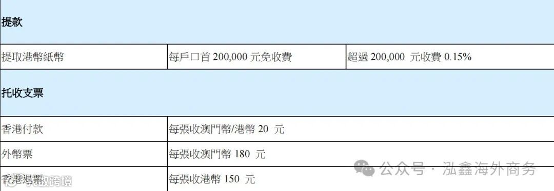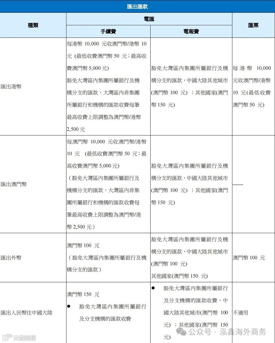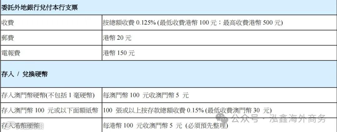 4.港元汇往非本地银行:澳门元200+最低收费澳门元500相关费用
